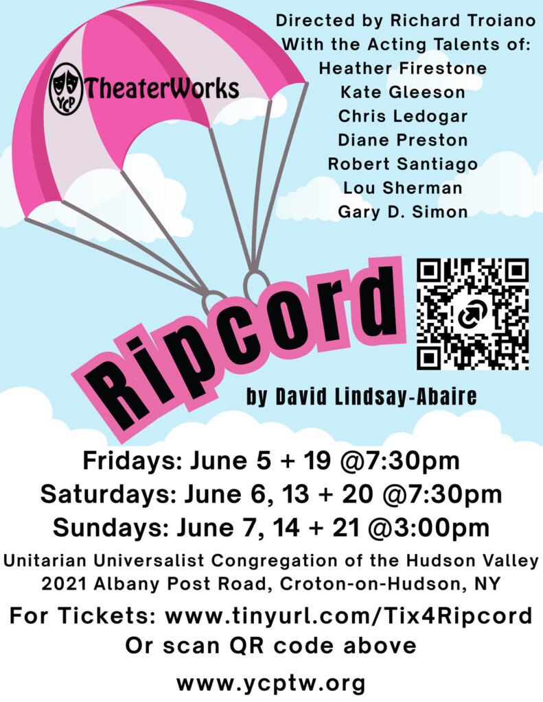Ripcord is directed by Richard Troiano with Diane Preston, Kate Gleeson, Christopher Ledogar, Robert Santiago, Heather Firestone, Gary D. Simon and Lou Sherman.